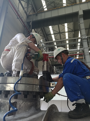 韦沃气动扭力扳手用于煤化工设备装配